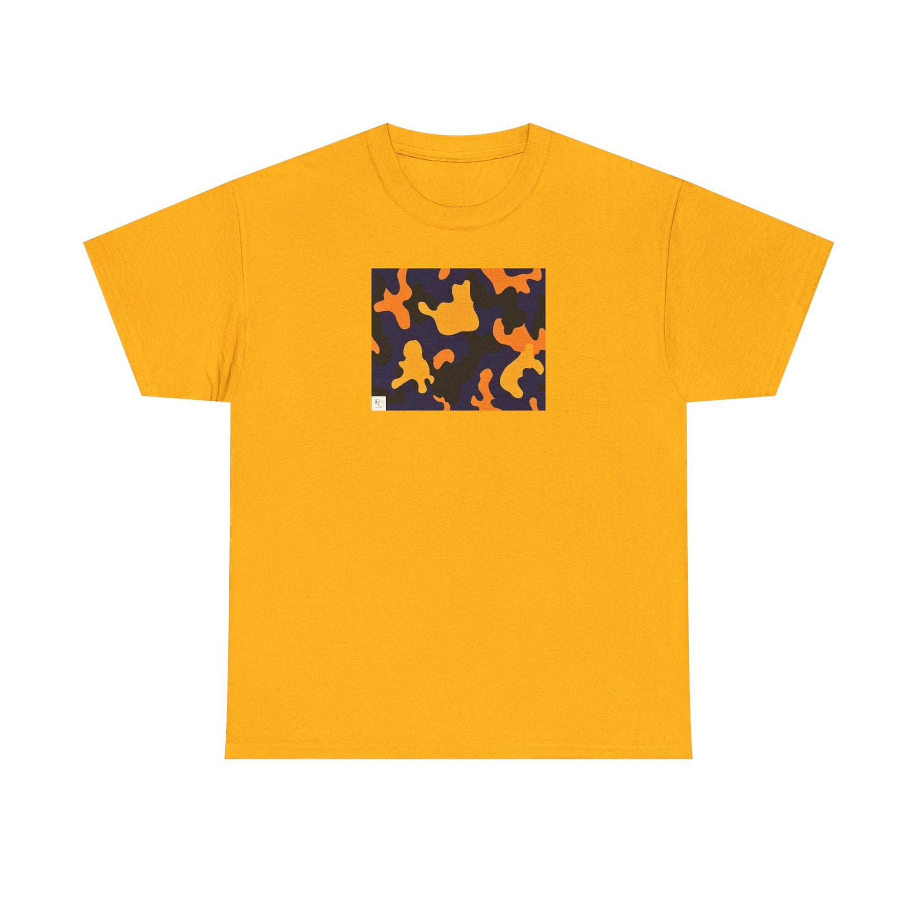 Our "Camo Style Design" T-shirt, brings a burst of sunshine to your wardrobe with its vibrant yellow hue and artistic design.